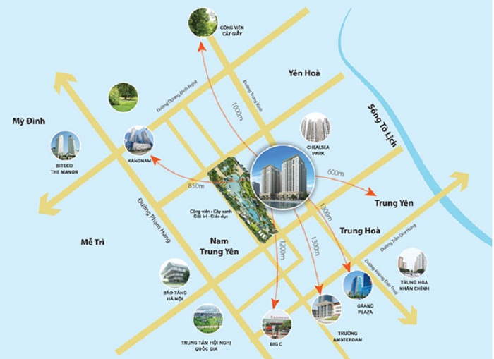 - Phía Tây giáp dự án Công viên Nam Trung Yên.